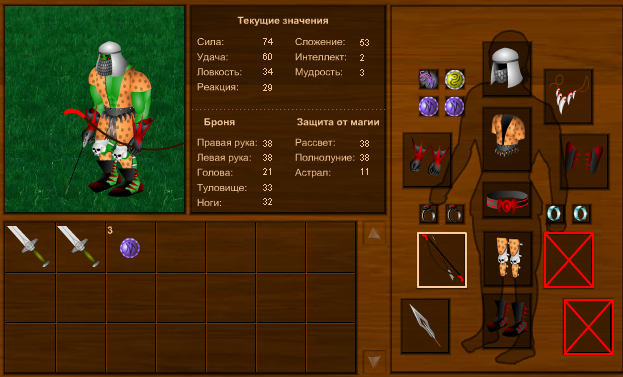 | а я на 10 не так хотел кинуть. хотел 30 силы сделать именно изза копья. чуть меньше ловы, но лук все равно надевается) позже скину свои варианты) з.ы. почему не в библиотеку?) хотя в творчестве тоже норм)